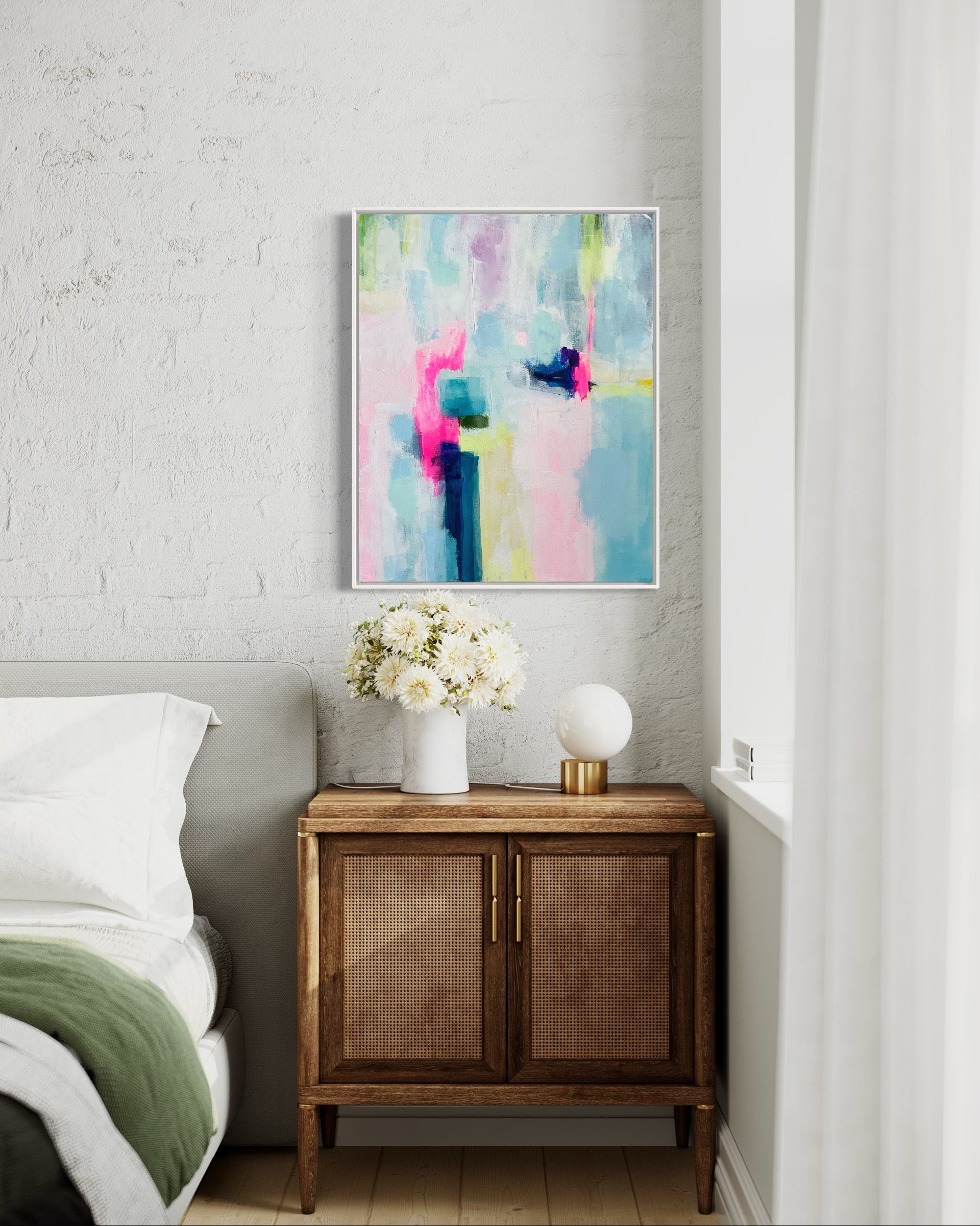 This abstract composition bursts with the bold, euphoric colors of spring emerging from a cold, urban winter. "Chicago When She Blooms" captures the city's vibrant spirit as it transforms—layered pastels and bright neons dance like the city’s skyline lit by early blossoms and hope. A celebration of rebirth and resilience, this piece is an emotional and energetic tribute to the soul of Chicago.
