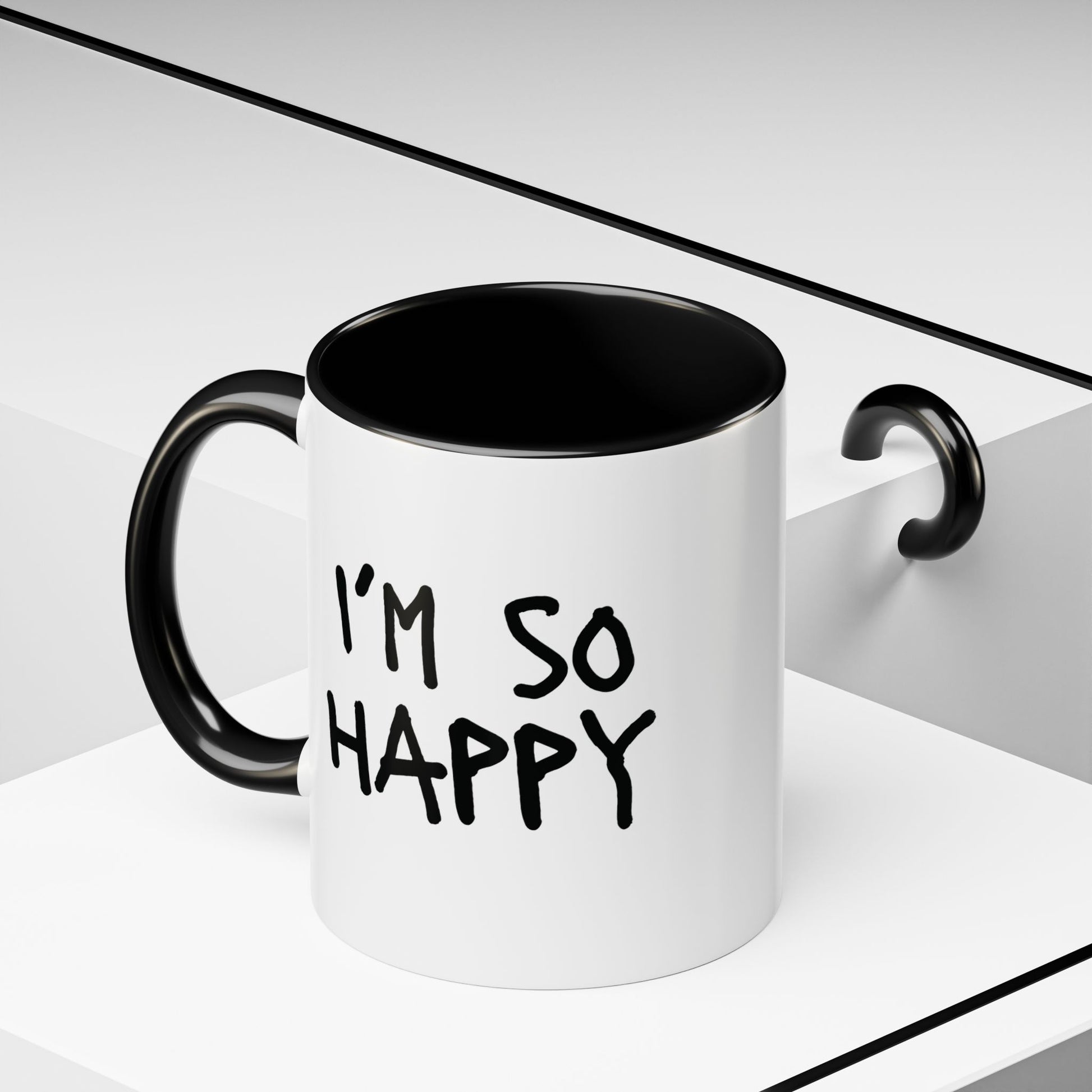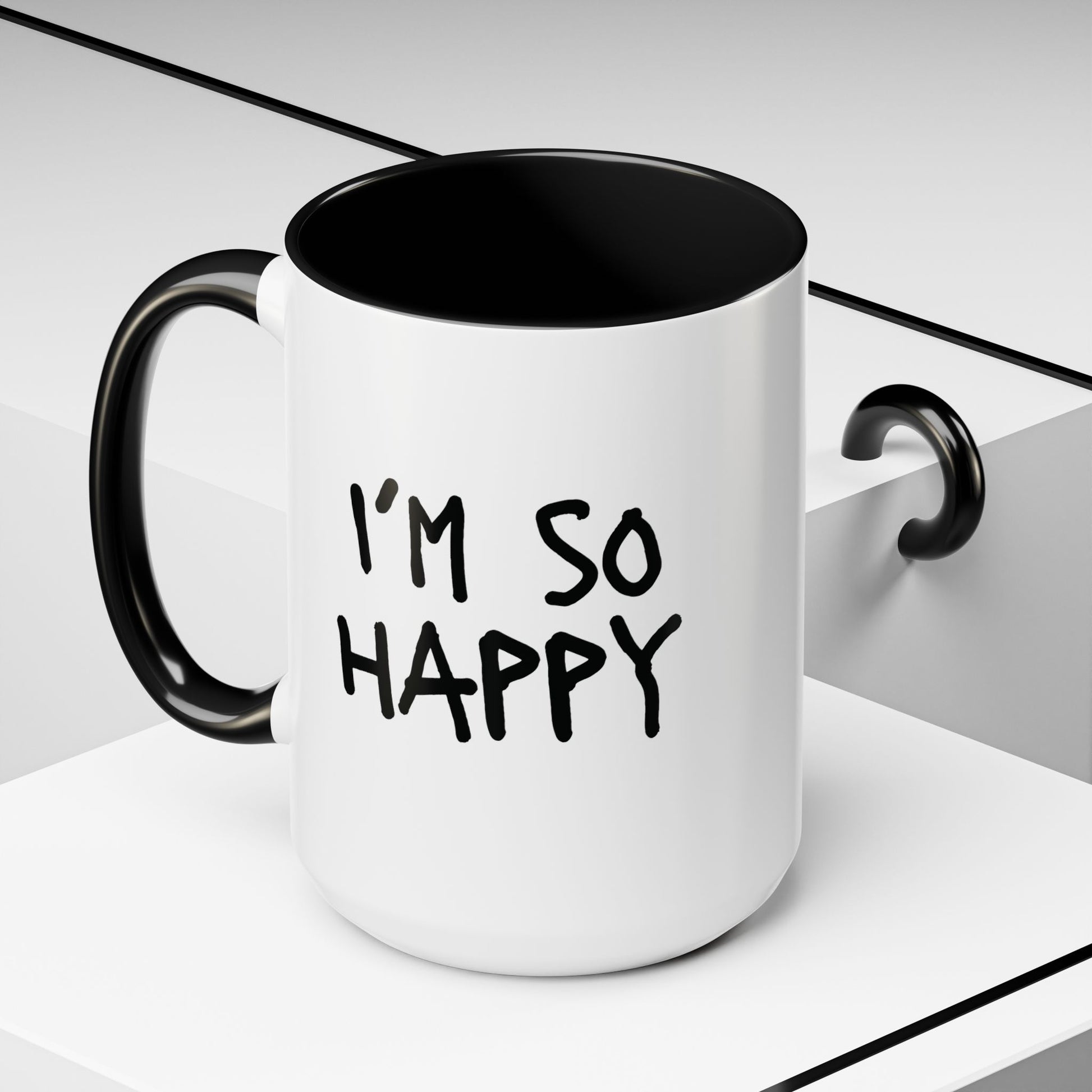 I'm So Happy Coffee Mug, Black Lettering (11oz, 15oz)