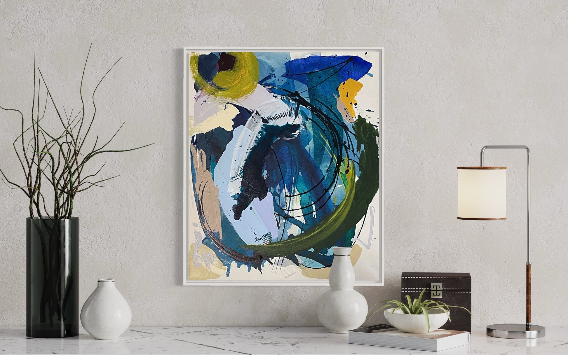 Movement is a dynamic and expressive abstract painting that captures the raw energy of motion and spontaneity. With sweeping arcs, layered brushwork, and bold contrasts of deep blues, mustard yellow, vibrant green, and energetic black lines, this artwork pulses with life. It evokes the rhythm of nature, the chaos of emotion, and the beauty of unfiltered expression. Perfect for collectors who seek a statement piece that speaks to fluidity, freedom, and modern artistry.