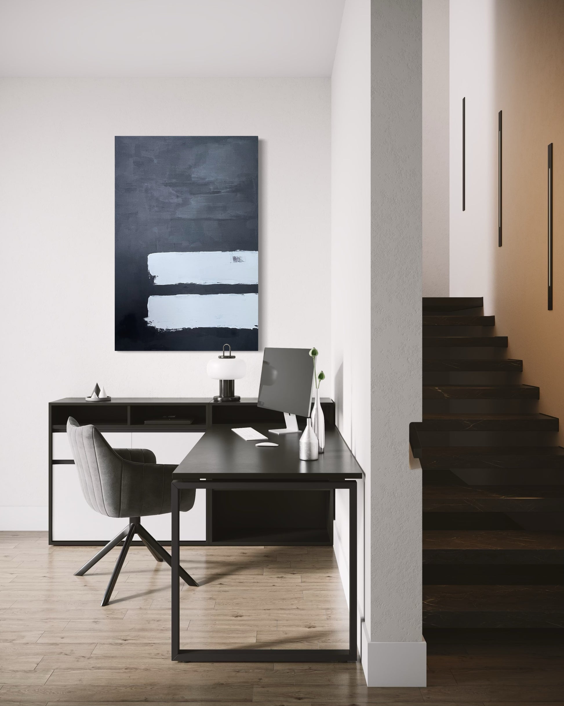 Payne's Gray in Parallel, 24"x36" Original Abstract Painting
